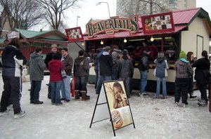 Oh, yeah. Did I mention that BeaverTails, just like Poutine, are sold in small chip-truck-sized, cabin-like buildings. Here is a typical BeaverTail vendor: