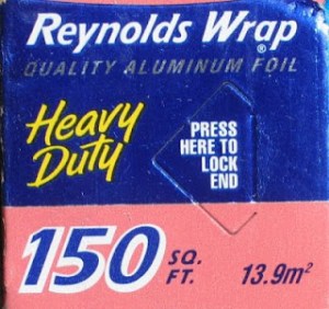 Reynolds wrap: http://4.bp.blogspot.com/_gJCMpC3I-ng/TAkYjt80sXI/AAAAAAAAGxc/-grfoaKwtvg/s320/foil.jpg