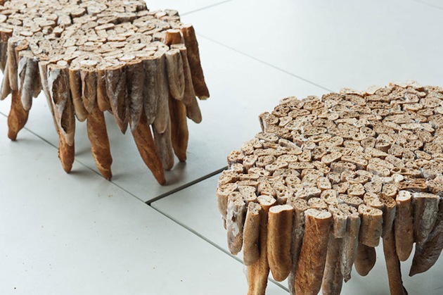 Studio Rygalik, a Polish design team, created these Baguette Tables as a statement on mass consumption–I don’t get it at all by the way. But, then again, I’m not too bright. How does wasting perfectly good French loaves teach us not to waste perfectly good French loaves? “Ugh,” she moans as she grabs her head and says, “I just gave myself a circular conversation OCD headache.”