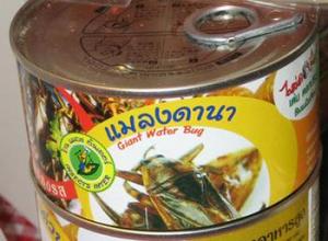 Well, apparently our friends in Thailand do not possess this North American squeamishness. Canned tuna is for wimps. Cloverleaf salmon for the faint at heart. If you want a hearty meal, whip up a water beetle salad sandwich.